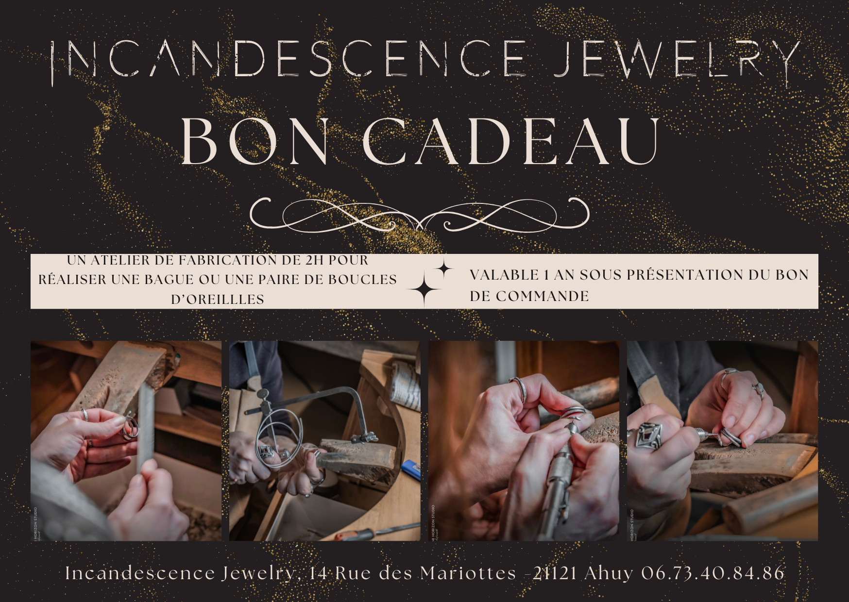 Durant cet atelier de 2 heures, la personne guidée franchira les portes de l’atelier Incandescence Jewelry pour donner naissance à son propre bijou en argent massif :