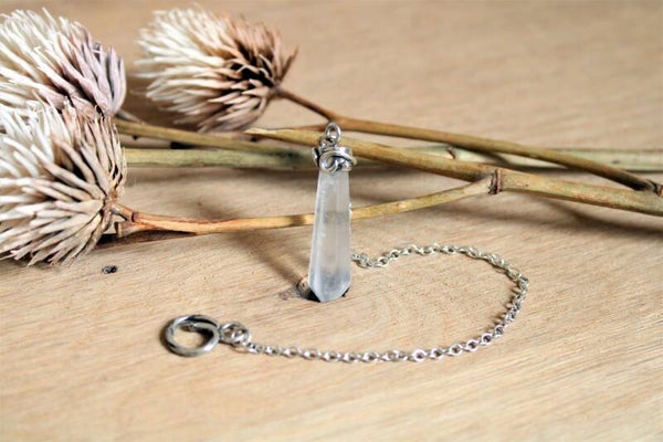 Pendule radiesthésie "Olympe", outil divinatoire - Quartz et argent massif
