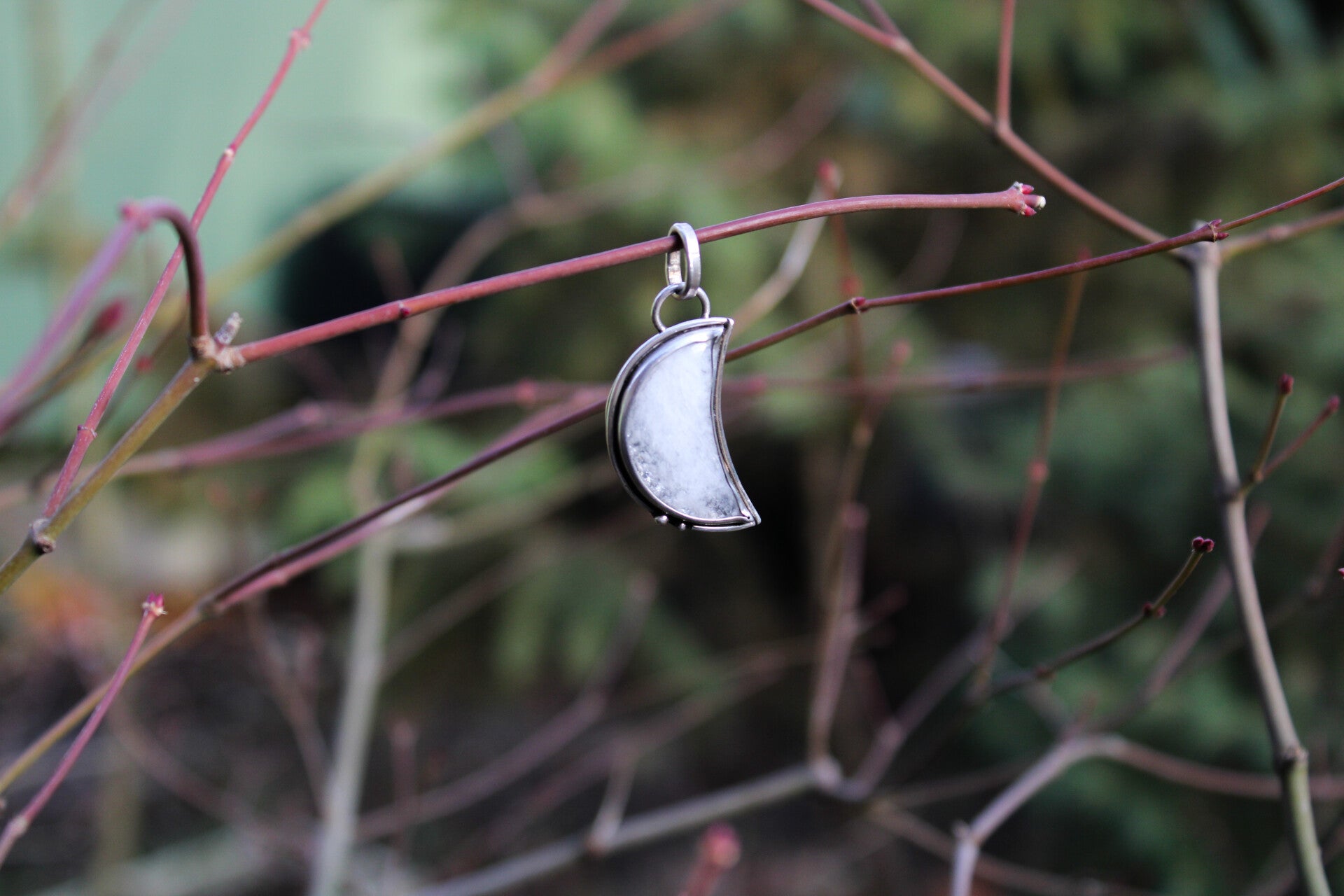 Pendentif lune witchy "Sirona" - Belomorite et argent massif